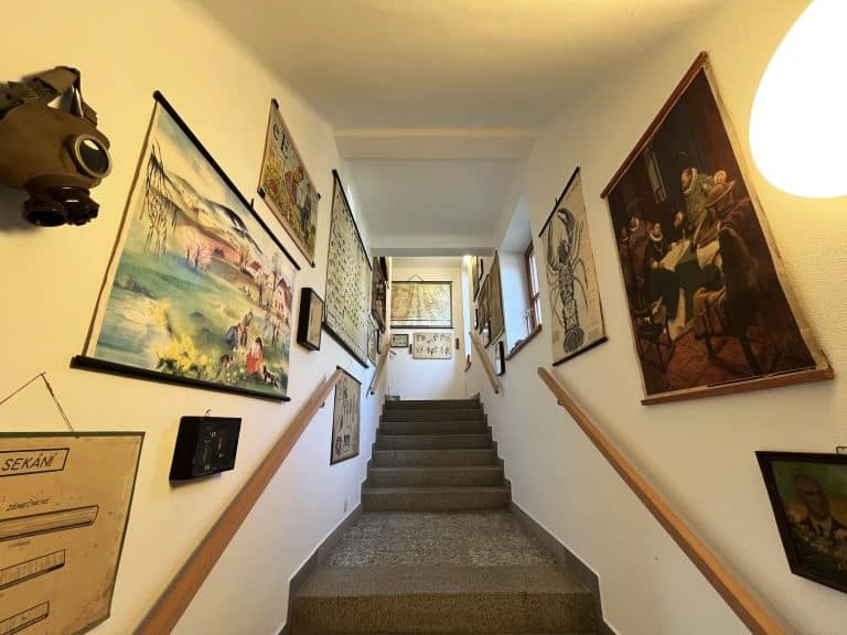 Stará Škola is located on the border of southern and central Brda, halfway between Plzeň and Příbram, in the village of Míšov. The school building was built in 1886 by Emperor Franz Joseph I. and served as a municipal two-classroom school until the 1950s, when it was used as a hostel for the army. It was then converted into a pub with a dance hall and a shop.